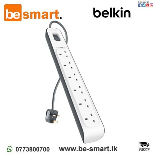Belkin 6 Way/6 Plug 2m Surge Protection Extension Lead Strip, White